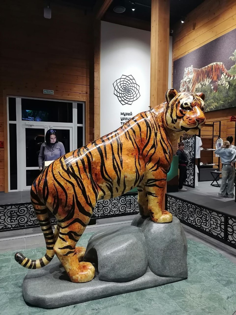 Музей Уссурийской тайги. Интерактивный. Всем рекомендую! Тигр при входе - сделан из янтарной мозаики по спец заказу в Калининграде. Там ещё панно есть, тоже полностью из янтаря. Много всего интересного, но самое завораживающее - это фильм в 5д! Он входит в стоимость билета. Вобщем, вышли мы под очень сильным впечатлением. И, думаю, что ещё раз точно сходим. По Вашим просьбам дописываю адрес: Уссурийск, ул. Краснознамённая, 161в.