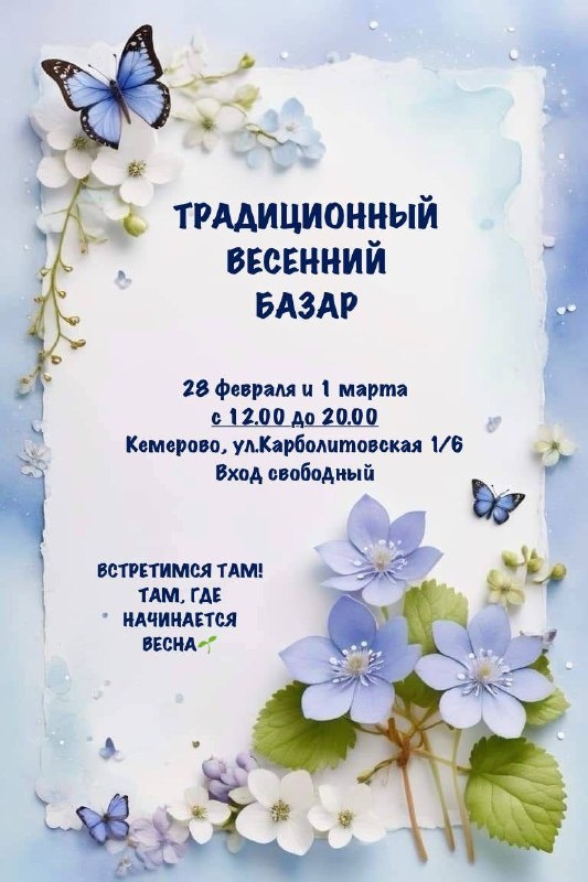 ! 🦋 Друзья, приглашаем Вас окунуться в атмосферу волшебства и уюта на ежегодном Весеннем базаре🌷 Среди лёгкой музыки, живых выступлений, ароматов свежей выпечки, мастер-классов, ярмарочной суеты, Вы найдете и наш маленький усато-полосатый «островок добра»😇 Здесь Вы сможете: 🐾помочь нашим подопечным, приняв участие в беспроигрышной лотерее, сделав пожертвование или просто передав «вкусняшку» для них🐶🐱 🐾найти лучшего друга, ведь с нами будут очаровательные Хвостики в ожидании Весеннего чуда💚 Кто знает, может, именно в этот волшебный день Вы заберете домой любовь всей своей жизни😍 Заглядывайте к нам на огонёк🤗 Подарите дом спасённой душе или просто поддержите нас своим теплом🥰 Чудеса случаются там, где в них верят и где их творят🫶 До встречи🙌 https://vk.ru/wall-211218015_3359 Всегда Ваш #ПриютУсатыйПолосатый #Важное