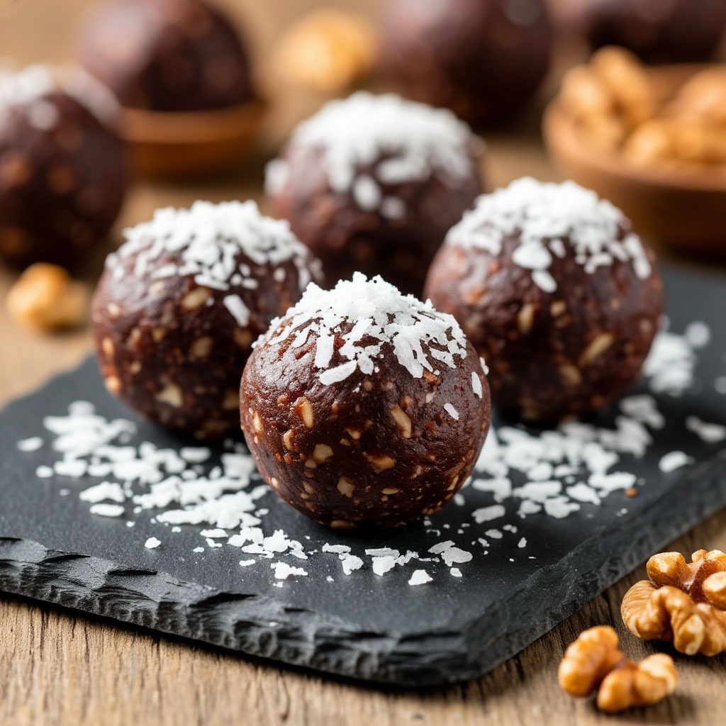 Финики замочите в горячей воде на 10 минут, слейте воду. В блендере измельчите орехи в крошку, добавьте финики и какао, пробейте до однородной липкой массы. Скатайте шарики, обваляйте в кокосовой стружке. Уберите в холодильник на час.