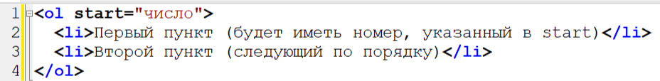 В мире веб-верстки списки встречаются повсеместно: от простых перечней товаров до сложной навигации. Обычно мы используем теги <ol> (ordered list) и <li> (list item), чтобы создать нумерованный список. Браузер автоматически начинает отсчет с единицы. Но что, если вам нужно начать не с первого пункта, а, скажем, с пятого или с десятого? Именно для этого и существует атрибут start. Атрибут start используется исключительно с тегом <ol> (упорядоченный список). Он позволяет задать целое число, с которого начнется нумерация первого элемента списка. Синтаксис: Представьте, что вы пишете документацию и вам нужно продолжить список, который начался в предыдущей главе. В браузере этот код выведет следующее: 4. Настройка файрвола 5. Установка веб-сервера (Nginx/Apache) 6. Подключение SSL-сертификата Как видите, список начинается с четвертого пункта, что логично продолжает предыдущие три шага. Атрибут start отлично работает в связке с другим важным атрибутом — type. Атрибут type задает стиль нумер
