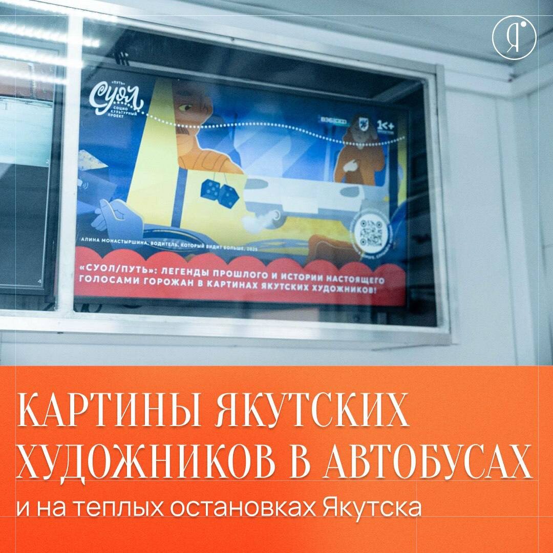 Этой зимой проект «СУОЛ (ПУТЬ)» поселился там, где мы бываем каждый день в автобусах и на тёплых остановках Якутск. 🚌 30 автобусов и 12 остановок теперь показывают картины молодых художников и иллюстрации к легендам Долины Туймаада. В пути можно увидеть визуальные истории города, послушать аудиогид с преданиями и рассказами водителей, отсканировать QR-коды и глубже погрузиться в смыслы. 🎨 Дизайн создала студия «Сулусчан» резидент креативного кластера Квартал Труда, объединив современную графику и якутские традиции. В планах ещё больше автобусов и новые серии видео, в том числе по детским рисункам 💛 Online Якутия | Ждем вас в МАХ