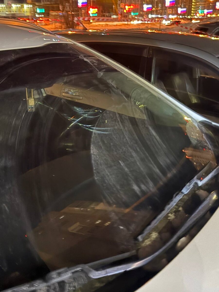 В Челябинске лобовое стекло Kia Sportage разбили огромной картофелиной, брошенной с балкона высотки