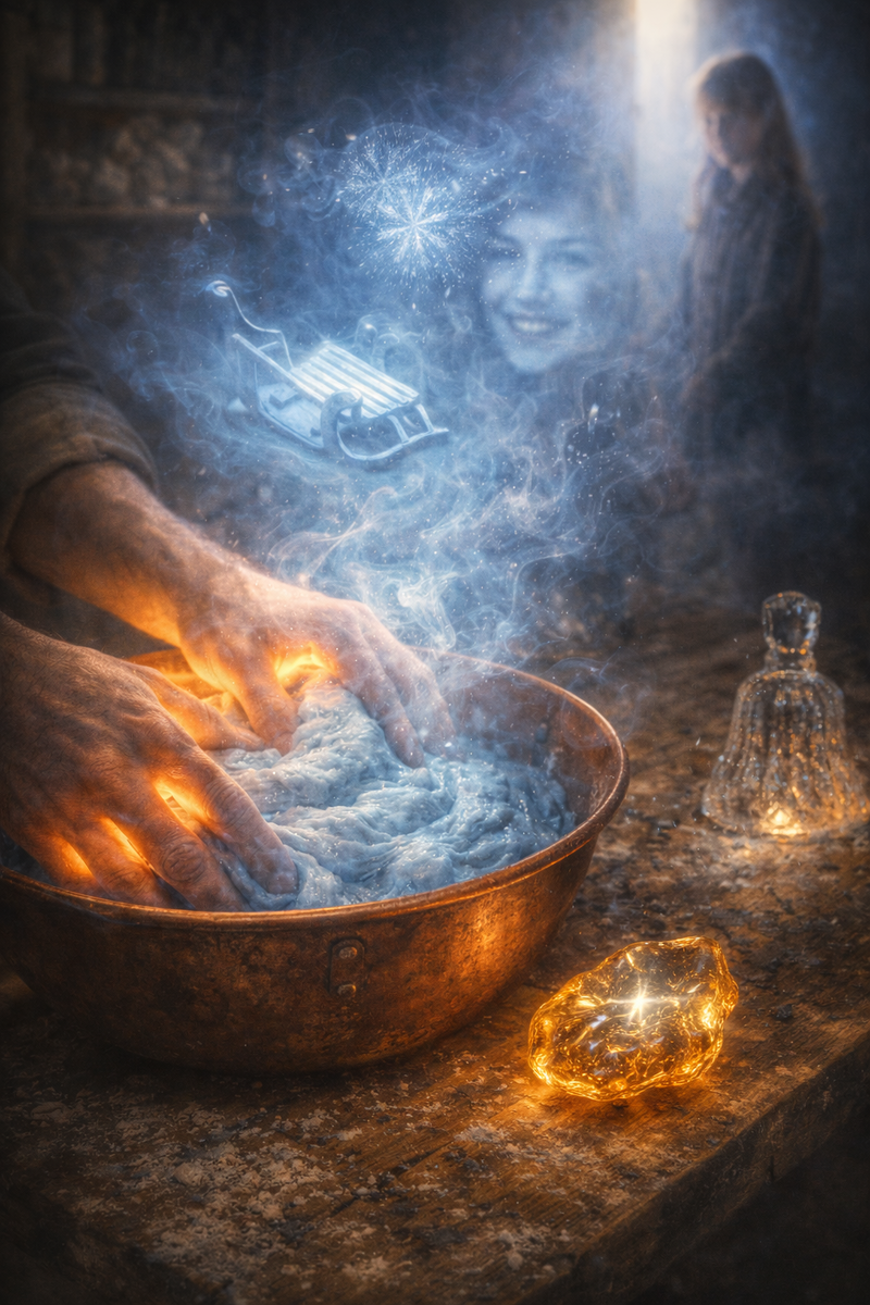 Рядом стояли обычные, но тщательно отобранные вещества: мука с поля, где осенью танцевали на празднике урожая; яйца от кур, которых кормили зерном с благодарностью; молоко, надоенное под тихую колыбельную. Это был каркас. А душу дадут три странных ингредиента.