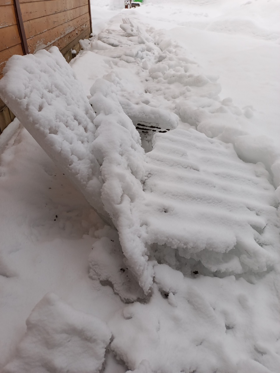 А ведь я подумывал вчера ещё и у дома снег расчистить. Хорошо, что устал и в дом ушёл. Под глыбы льда не попал.