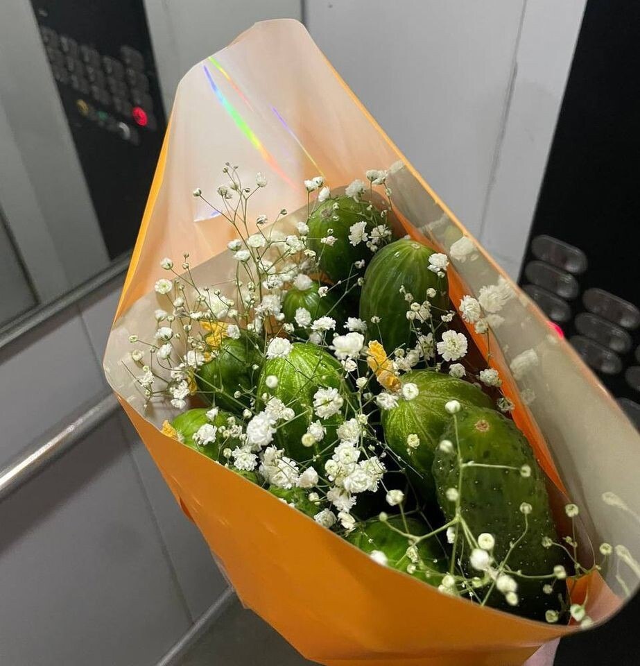 Мужчины начали дарить девушкам букеты из огурцов на День всех влюбленных. Соцсети взорвала фотография такого недешевого подарка. Парень рассказал, что встал в 5 утра, собрал любимой букет из огурцов разных сортов и украсил гипсофилой. Девушка старания оценила. А какой подарок вы получили на 14 февраля? Севкор теперь в MAX 👉 😍😍Читайте Севкор