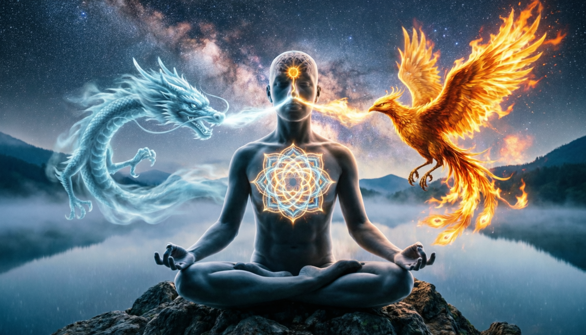 Она помогает уравновесить полушария мозга, успокоить ум и восстановить внутренний ритм. 💡 Совет: Представьте, как с каждым вдохом из левой ноздри входит голубой лунный свет, из правой — золотой солнечный. В сердце они смешиваются в белый огонь пробуждения. Ты не должен быть целым за счёт подавления одной части.