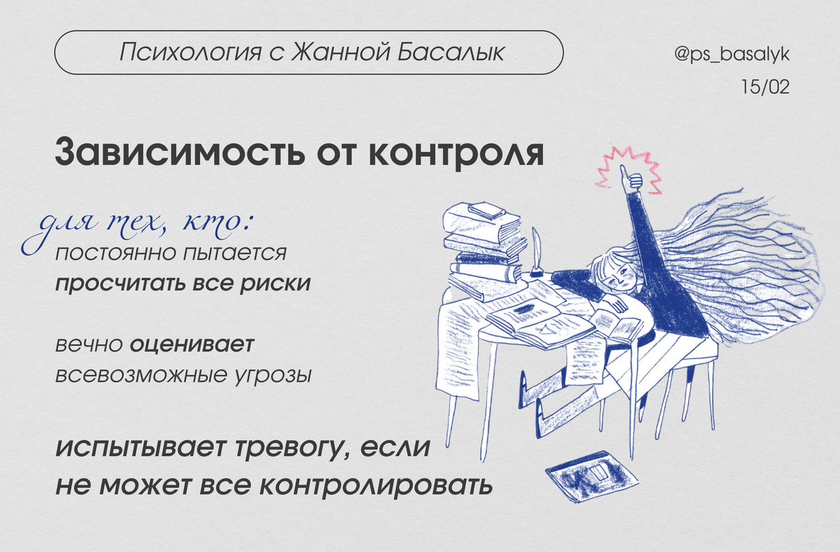 Поэтому попытка предсказать будущее снижает уровень тревоги. Когда человек продумывает сценарии, ему кажется, что риск уменьшается. Возникает ощущение управляемости, но это иллюзия предсказуемости. Ни один анализ не способен полностью устранить неопределённость. Тем не менее мозг фиксирует сам процесс анализа как «защитное поведение». При повторении цикла: напряжение → анализ → краткое облегчение формируется устойчивый нейронный путь, дофаминовая система подкрепляет поведение. В результате человек начинает: Чем больше контроля, тем выше чувствительность к неопределённости. Это объясняет, почему со временем: Гиперконтроль становится не решением, а частью тревожного механизма. Подобные темы я ра