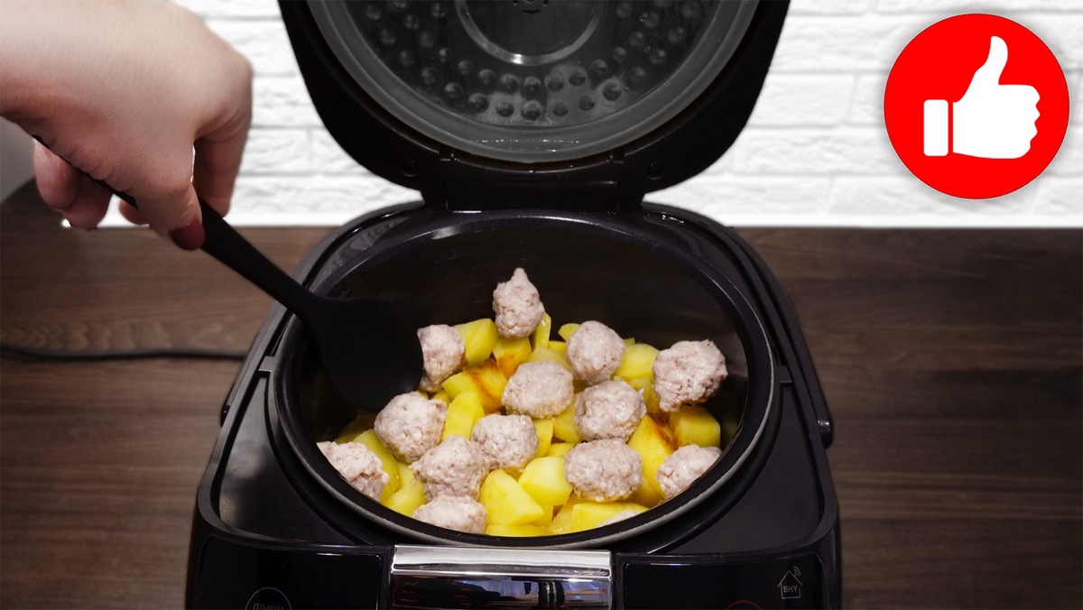 Картошка с фрикадельками и баклажанами в мультиварке на обед или ужин