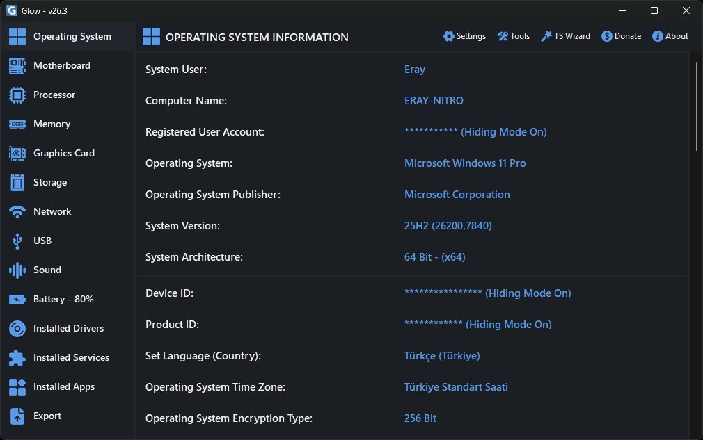 ⚡ Вышла версия Glow 26.3 — инструмента для системного анализа аппаратных и программных возможностей ПК на Windows 10/11