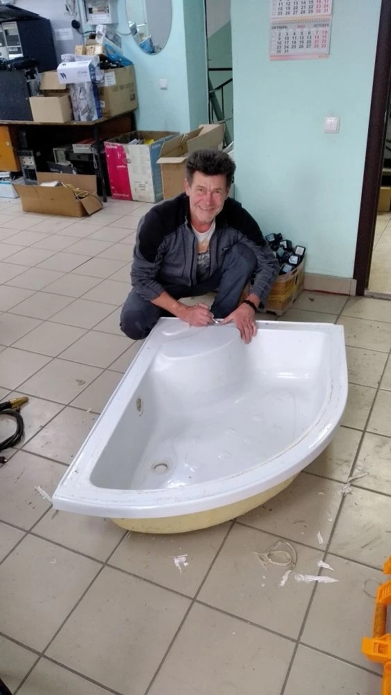 Началось всё с поддона от душевой кабины. Обычный такой белый поддон, который кто-то выбросил за ненадобностью, а папа приметил. Следующим артефактом стал кокос. Откуда он взялся на заводе? Опустим детали, чтобы не травмировать чувствительных читателей, скажем так: кокос был найден и спасен. Причем совершенно бесплатно. Но для папиной задумки это было идеальное сырье.