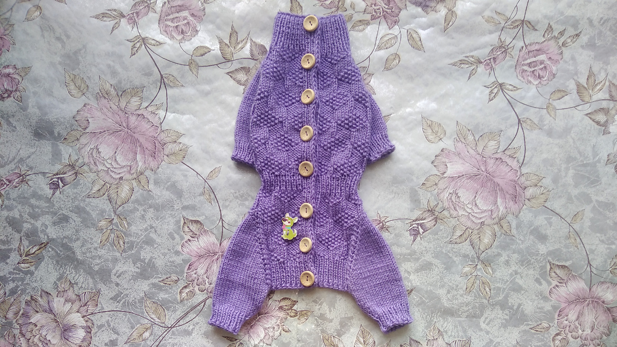 Вязаные спицами комбинезоны для собак нашли своих счастливых обладателей!