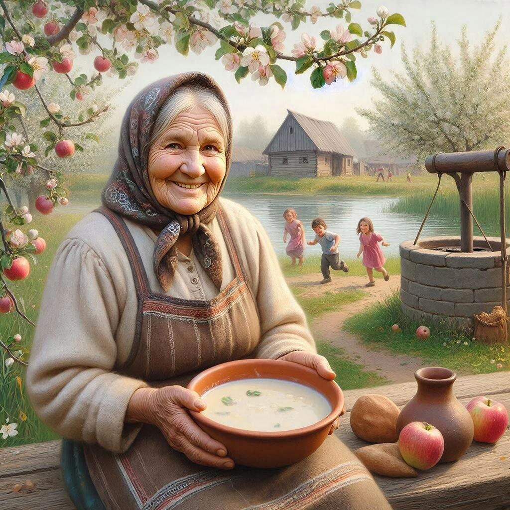 У пруда звонко смеялись дети, бежали босиком по мокрой траве, брызгались водой и кричали что‑то весёлое. Я присел на лавку у покосившегося плетня, разглядывая этот застывший кадр из прошлого, как вдруг из калитки вышла бабушка Акулина — маленькая, сухонькая, с глазами, полными лукавого огонька.