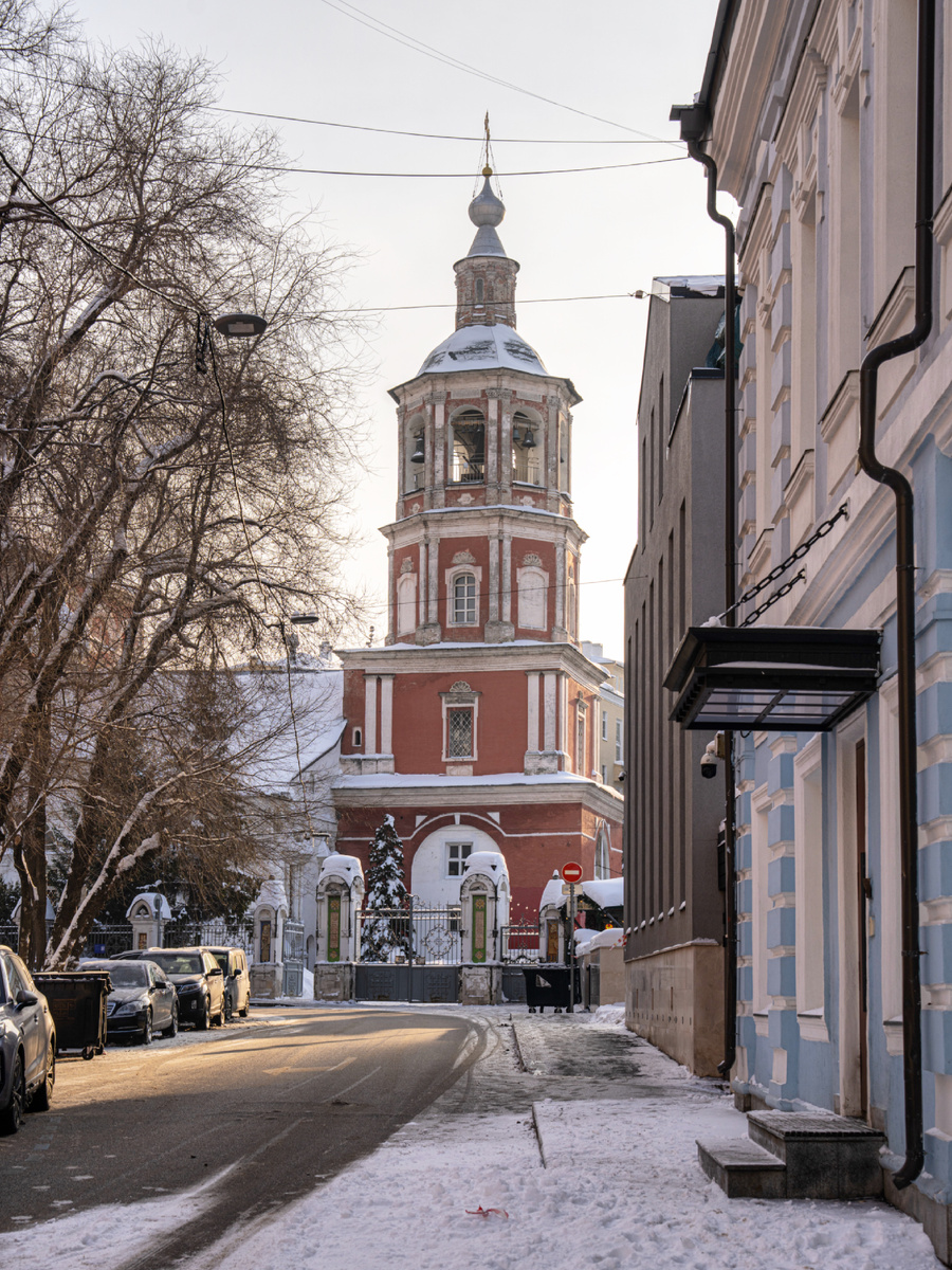 Перед вами старинная церковь Введения во храм Пресвятой Богородицы в Барашах . Бараши это царские слуги, которые во время царских выездов и походов везли шатры и занимались их установкой. Они поселились в этом районе древней Москвы в 16 веке.