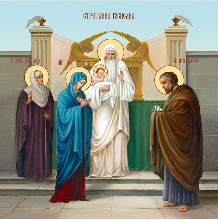 Сегодня на утрене Церковь читает отрывок из Евангелие от Луки: «Тогда был в Иерусалиме человек, именем Симеон. Он был муж праведный и благочестивый, чающий утешения Израилева; и Дух Святый был на нём. Ему было предсказано Духом Святым, что он не увидит смерти, доколе не увидит Христа Господня». От Луки 2:25,26. Симеон когда-то был переводчиком Священного Писания и усомнился в том, что Дева может родить Сына и хотел написать вместо слова «дева» «молодая женщина», но Ангел воспрепятствовал этому и сказал, что преведник не умрёт пока не увидит Христа. «И пришёл он по вдохновению в храм. И, когда родители принесли Младенца Иисуса, чтобы совершить над Ним законный обряд», От Луки 2:27. По Закону родители приносили младенца-первенца в храм и благодарили Бога за дарование им ребёнка. Старец Симеон ожидал встречи со Христом долгие годы и вот, наконец, она свершилась: «он взял Его на руки, благословил Бога и сказал: Ныне отпускаешь раба Твоего, Владыко, по слову Твоему, с миром», От Луки 2:28,