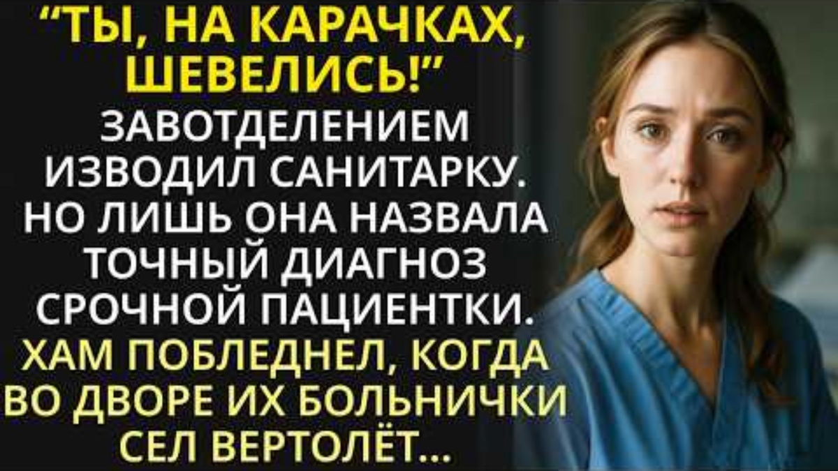 Она молча принесла судно. С кровати раздался тихий, сдавленный голос пациентки. Она медленно повернула голову, и её осмысленный взгляд задержался на лице санитарки. — Я... я вас совершенно точно знаю, — прошептала пациентка, с трудом сглатывая. — Вас много раз показывали по телевизору. Клиника здоровья плюс на Рублёвке, верно? Вы же главный врач?