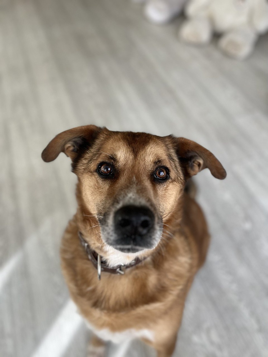 Тим — молодой пёс, скорее всего, когда-то он был домашним. Он отлично ходит на поводке, знает базовые команды и уверенно ведёт себя в доме.