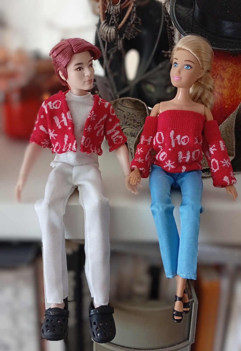 В итоге получилось забавное болеро для Чона и простой топ с отдельными рукавами для Сары.