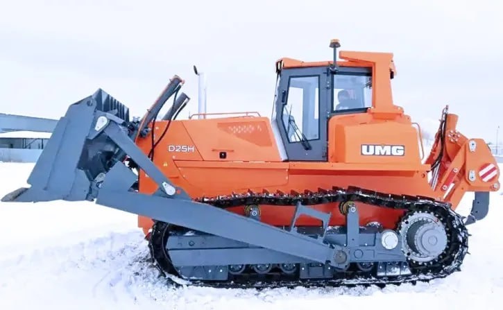 На заводе «Челябинские строительно-дорожные машины» изготовлен опытный образец бульдозера D25H эксплуатационной массой около 24 тонн. ⚙️ Технические характеристики: • Тяговый класс: 15-й • Двигатель: ЯМЗ-536, 176 кВт • Отвал: 7,5 м³ • Рыхлитель с изменяемым углом рыхления • Ходовая часть: семикатковая 🔧 Ключевые особенности: → Гидростатическая трансмиссия → Электронная панель приборов с голосовым информатором → Бортовая система регистрации данных («чёрный ящик») → Узкий капот для улучшения обзора → Возможность установки гусениц разной ширины без изменения колеи → Усиленная защита моторно-трансмиссионного блока (продольная балка + V-образный поддон) 📊 Линейка UMG: • D16H — 10-й тяговый класс • D20H — 12-й тяговый класс (обе модели в реестре Минпромторга РФ) • D25H — 15-й тяговый класс (новинка) 🔄 Статус: Опытный образец проходит заводские испытания. После их завершения — запуск серийного производства. КОМТРАНС.БЕЛ #комтрансбел #бульдозеры