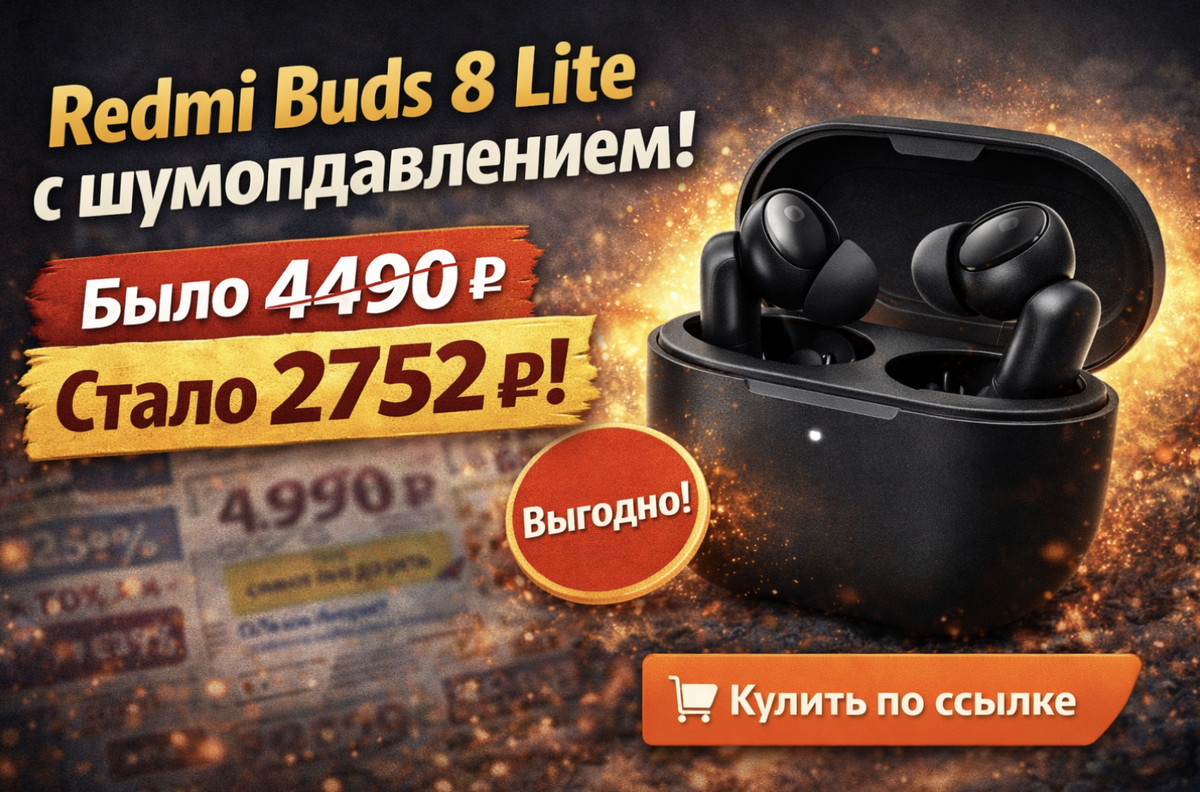 2752 ₽ вместо 4490 ₽. То есть берёшь рабочий вариант от Redmi не по цене “премиум”, а ближе к бюджету. Шумодав в “лайт” моделях бывает разный: иногда это чисто галочка.