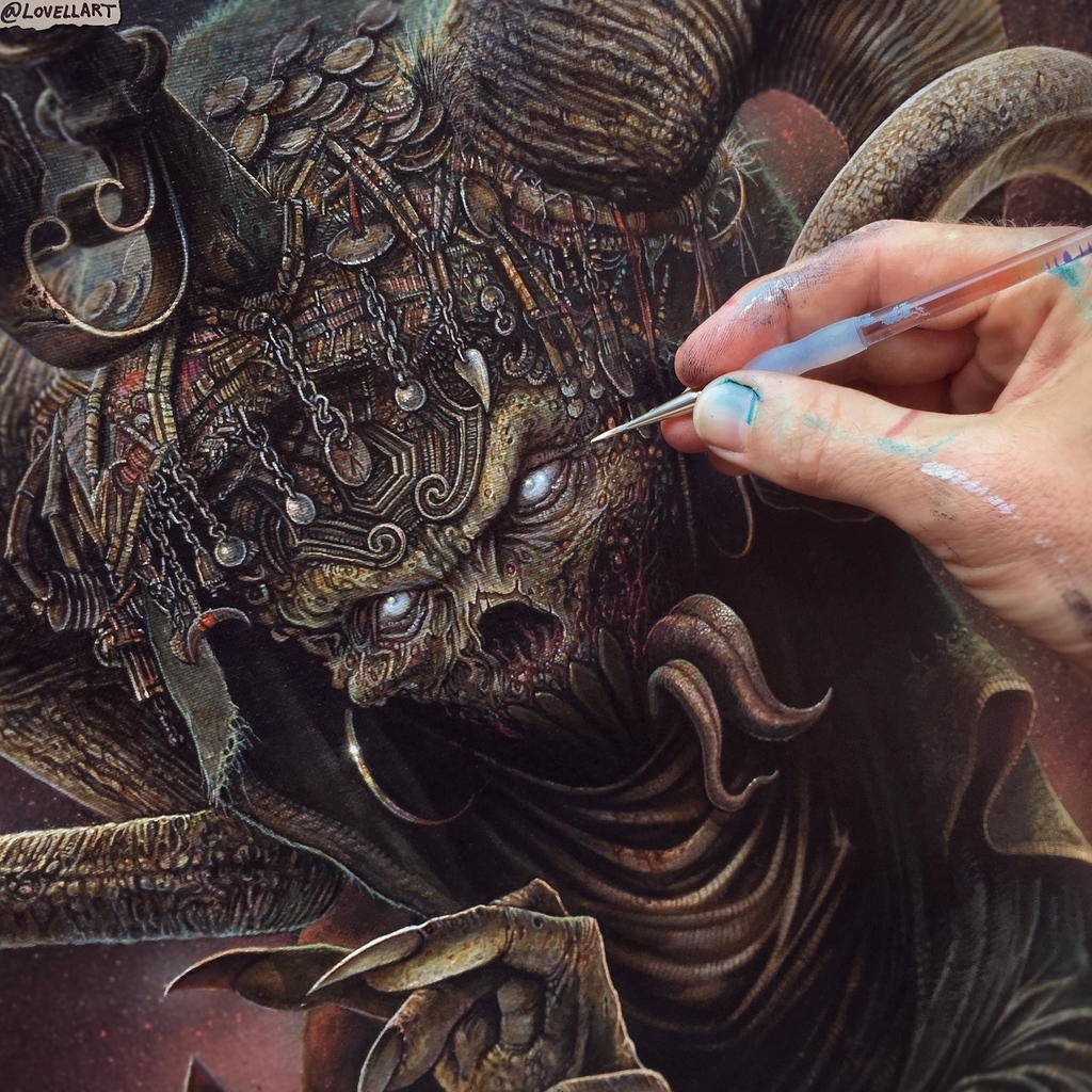 Эмоция и ностальгия как движущая сила Несмотря на коммерческий опыт, Ловелл всегда держит в сердце ту искру детских впечатлений. Он называет игрушки, мультфильмы и фильмы своего детства не просто источниками вдохновения, но и инструментами эмоциональной честности: через визуальные приёмы он стремится передать ту же непосредственность и искренность, которые ощущал в молодом возрасте. В его работах можно заметить сочетание яркого декоративного языка и интимной глубины, когда зритель видит не только персонажа или сцену, но и внутренний мир того, кто её создавал. Именно эта способность «взращивать» чувства на холсте делает его стиль узнаваемым и близким широкой аудитории.