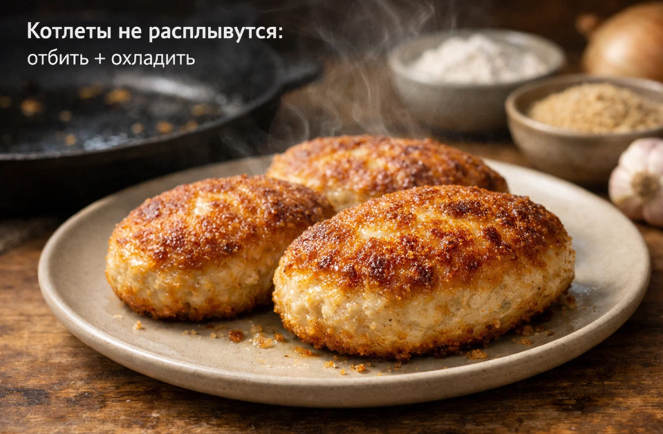 Каждая хозяйка хотя бы раз сталкивалась с досадной ситуацией: старательно налепила красивые, пухлые котлетки из куриного фарша, выложила их на раскалённую сковороду с маслом, а через несколько минут вместо аппетитных румяных полусфер получила какие-то блины. Плоские, растёкшиеся, потерявшие всю свою первоначальную форму. Вроде бы и фарш хороший, и руки растут откуда надо, а результат совершенно не радует глаз. Особенно обидно, когда готовишь для семьи или гостей, хочется подать на стол что-то красивое и аппетитное, а получается совсем не то, что планировалось.