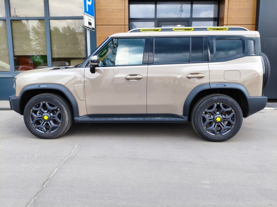 Завершая тему экстерьера Jetour T2, не могу не отметить ещё два момента, которые не оставили меня равнодушным. Первое — это цветовое кцентирование деталей кузова люминесцентно-жёлтым цветом. Выделены буквально крупные элементы: рейлинги, ступичные колпачки, болты и буксировочные петли. Но как же это к месту смотрится и как суперски дополняет визуальный облик автомобиля!