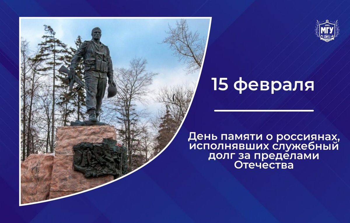 😺 15 февраля в России ежегодно отмечается День памяти о россиянах, исполнявших служебный долг за пределами Отечества