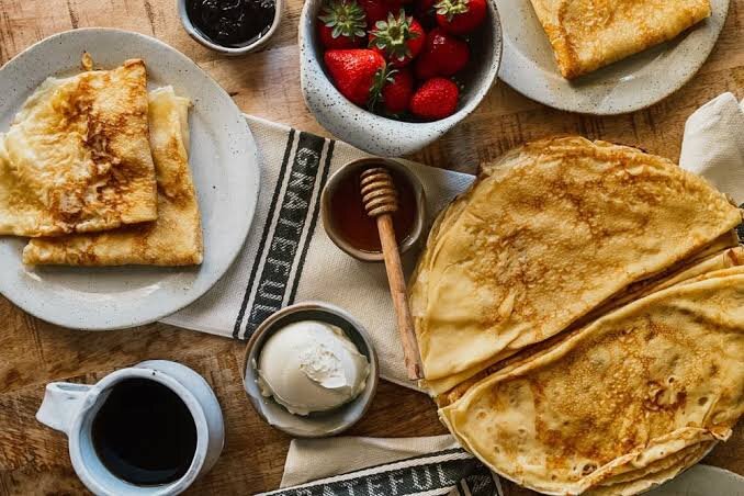 Подавать можно с чем угодно: сметана, варенье, мед, сгущенка, икра, слабосоленая рыба, грибы, творог, бананы с шоколадом — вариантов бесконечность.