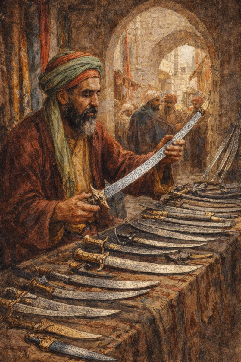 Но если посмотреть на источники, то легенды о дамасских клинках явно преувеличены. Да, они были очень хорошими для своего времени, но рассказы о том, что они рассекали камни или падающие волосы это уже восточная сказка, которую любили рассказывать торговцы, чтобы задрать цену. Европейские хроники крестоносцев действительно описывают случаи, когда арабские мечи рубили европейское оружие, но тут надо понимать, что европейские мечи в XI-XII веках были довольно грубой ковки, часто низкого качества, особенно у простых рыцарей. Богатые рыцари имели клинки получше, и те вполне могли соперничать с дамасскими.
