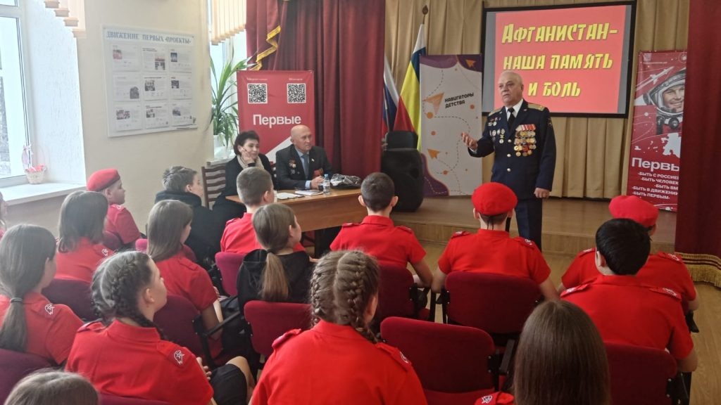 В рамках памятной даты — Дня памяти о россиянах, исполнявших служебный долг за пределами Отечества, который отмечается 15 февраля, в школе № 4 прошел урок мужества. Гостями стали участники боевых действий в Афганистане и представители «Юнармии». Мероприятие под названием «Равнение на подвиг» объединило юнармейцев 7 «А» и 7 «Г» классов и позволило ребятам открыть страницы героического прошлого своей страны, узнать о подвигах соотечественников и отдать дань уважения тем, кто защищал интересы Родины вдали от дома. Для школьников эта встреча стала возможностью не просто услышать сухие строки учебника, а прикоснуться к живой истории. Перед ребятами выступили почетные гости: начальник штаба местного отделения «Юнармии» В. И. Петренко и председатель Миллеровской общественной организации «Союз ветеранов Афганистана» И. В. Жидков. Офицеры поделились личными воспоминаниями о службе, боевых товарищах и испытаниях, выпавших на долю солдат и офицеров. Рассказали молодежи о том, что значит быть вер