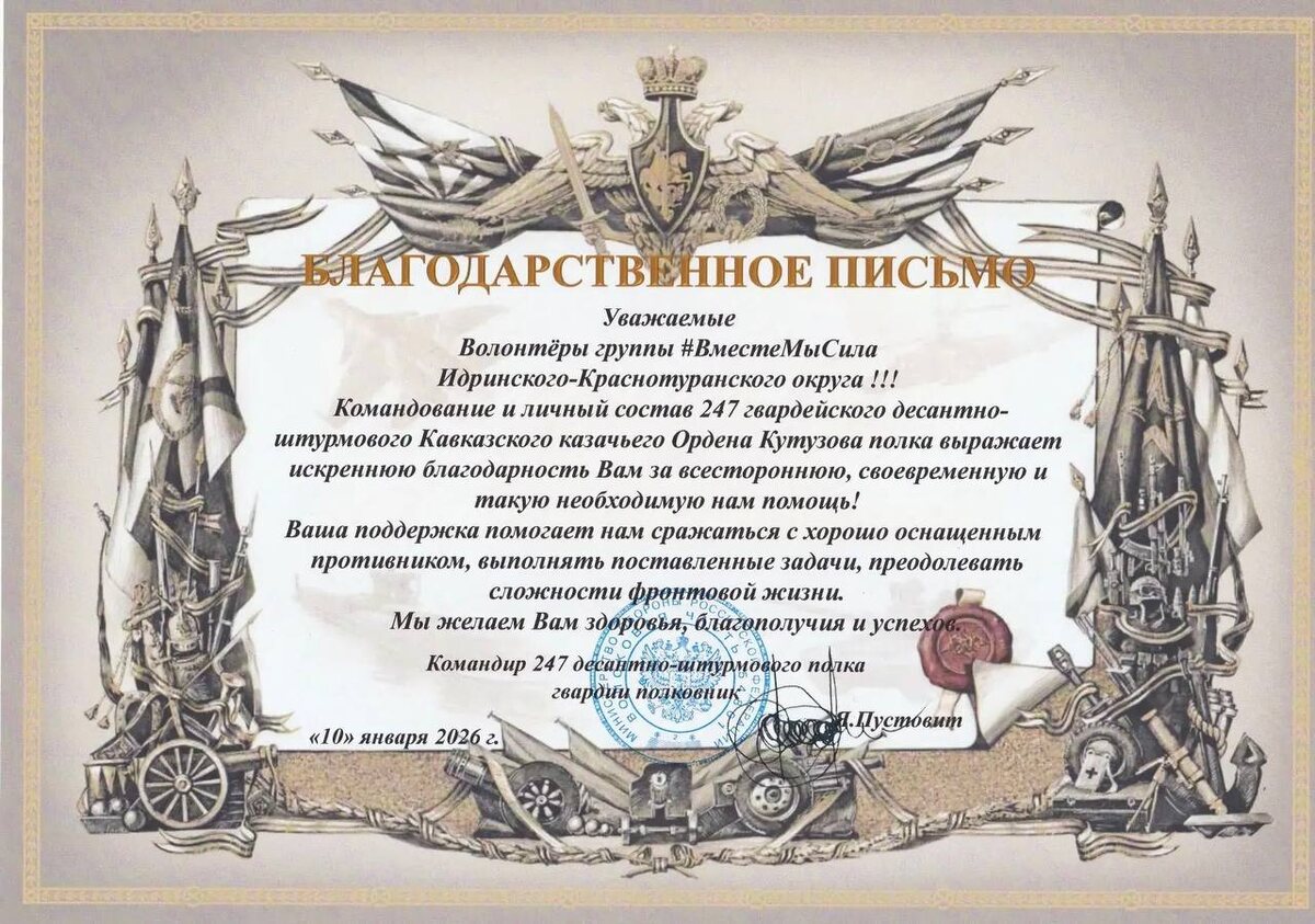 247 гвардейский десантно-штурмовой полк выражает благодарность за неоценимую помощь волонтёрскому движению #ВместеМыСила