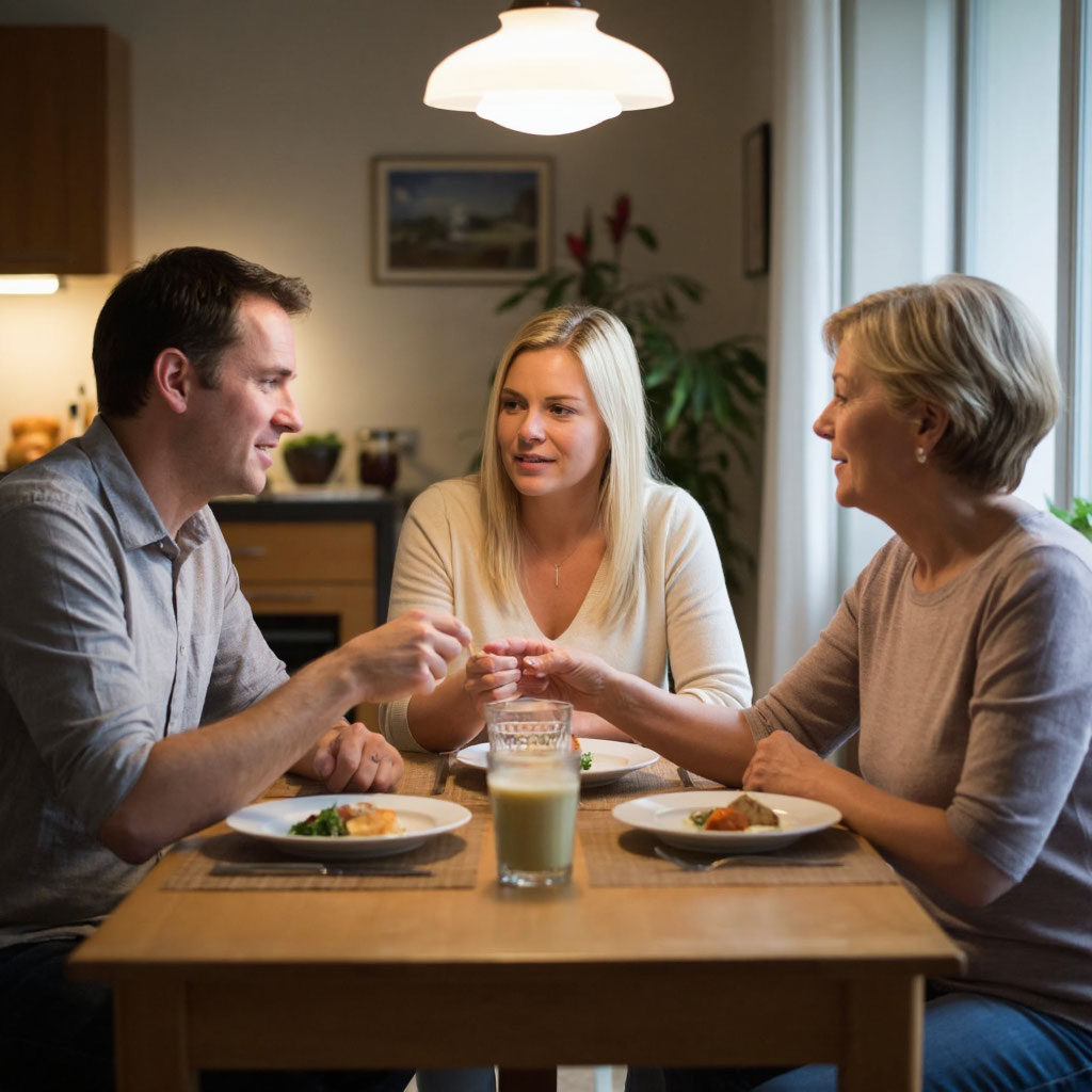 Когда свекровь приехала, она увидела, как Миша обнимает Ольгу, как Ольга смеётся над какой‑то шуткой Максима, как все трое смотрят друг на друга с теплом и нежностью. И впервые за много лет Лидия Петровна почувствовала не раздражение, а гордость за своего сына — за то, что он выбрал женщину, которая сделала его по‑настоящему счастливым.