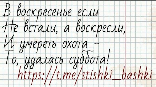 #неделя #воскресенье #стишкиизбашки Стишок каждый день для настроения @stishki_bashki 📹 - видеостишки тут 👈 🙊 - а тут можно комментировать 👈 Поделитесь стишком с друзьями