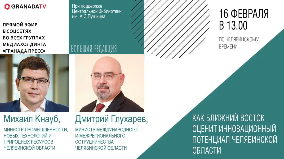 В феврале в Эр-Рияде, столице Саудовской Аравии, прошла двухдневная промышленная выставка, участниками которой стали и челябинские предприятия. Южноуральцы представили свои инновации на коллективном стенде. О том, какого успеха удалось достичь на Ближнем Востоке, в прямом эфире на проекте «Большая редакция» расскажут министр промышленности, новых технологий и природных ресурсов Челябинской области Михаил Кнауб и министр международного и межрегионального сотрудничества Челябинской области Дмитрий Глухарев.