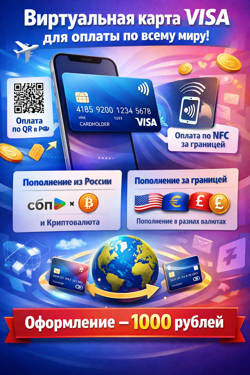 В эпоху, когда финансовые операции становятся все более глобальными, а санкции усложняют повседневные платежи, многие россияне ищут удобные способы для международных транзакций. Представьте себе виртуальную банковскую карту Visa, которую можно оформить онлайн, пополнить прямо из России и использовать для покупок как за границей, так и внутри страны. Эта услуга идеально подходит для тех, кто хочет обходить ограничения, сохраняя при этом простоту и безопасность. Давайте разберемся, как это работает и почему такая карта становится настоящим спасением для современных пользователей. Суть услуги в том, что вы получаете полноценную зарубежную Visa-карту в виртуальном формате, которая не привязана к российским банкам. Оформление занимает всего один день, а стоимость – всего 1000 рублей. Нет нужды в сложных верификациях или поездках – все делается удаленно. Главное преимущество: пополнение доступно прямо из России через удобные каналы. Вы можете использовать Telegram-бота или мобильное приложен