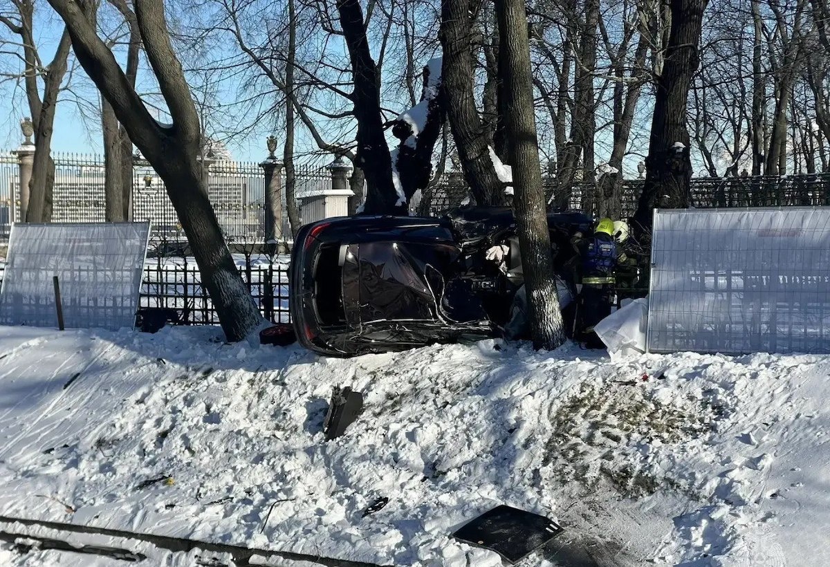 А вот фото и видео с места ДТП в Летнем саду, куда влетел мажор на Porsche