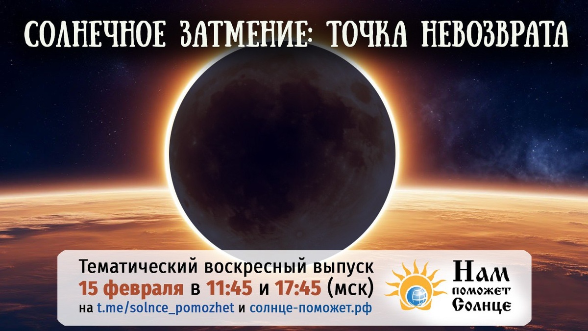 Астрологи называеют этот день «точкой невозврата», поскольку затмение совпадает с новолунием в знаке Водолея и наступлением китайского Нового года Огненной Лошади, что трактуется как редкое сочетание, знаменующее начало масштабных перемен. Тамара Глоба: «Это солнечное затмение приносит обострение, связанное не только с военными действиями, с вопросами стихии, но также и приносит активную борьбу за мир, свободу и проявление воли народов». Более подробно мы расскажем в нашей воскресной трансляции сегодня в 11.45 и 17.45 мск. И конечно, как всегда, все вместе обратимся к Солнцу, Митре-Майтрейе о Высшей помощи в эпоху Перехода. Ждем вас! ☀️Нам поможет Солнце (http://t.me/solnce_pomozhet)