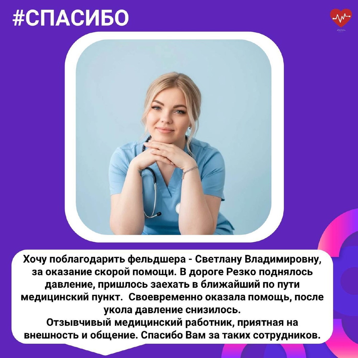 На этой неделе размещаем благодарность фельдшеру ФАПа Центральной межрайонной больницы № 2 - Светлане Ивашиной. Оставить благодарность медикам можно сканируя QR-код с помощью камеры вашего смартфона. Коды находятся на кабинетах врачей в поликлиниках и стационарах.