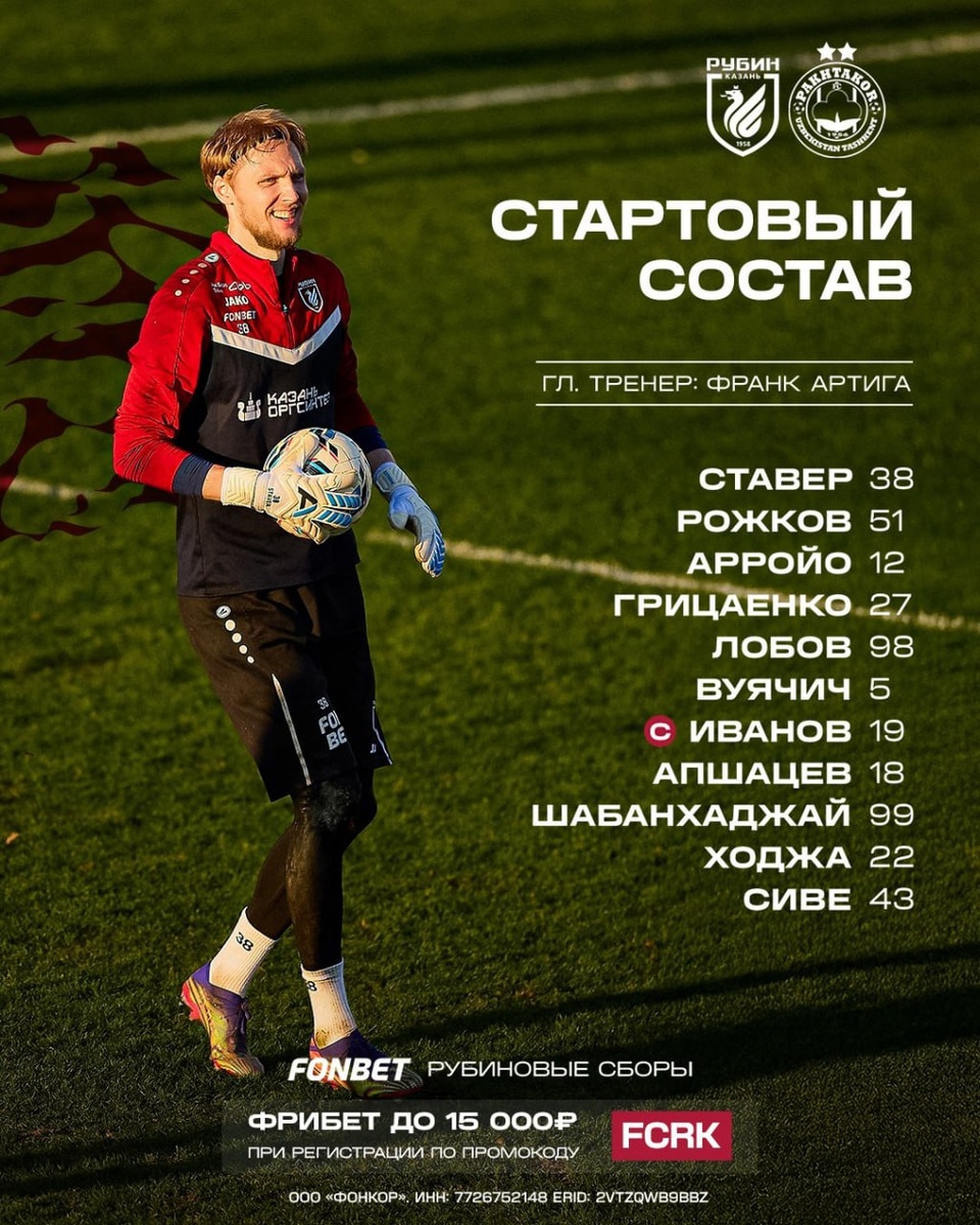 Последний товарищеский матч Рубина с открытой трансляцией. В старте - Сиве, Грицаенко и Апшацев.