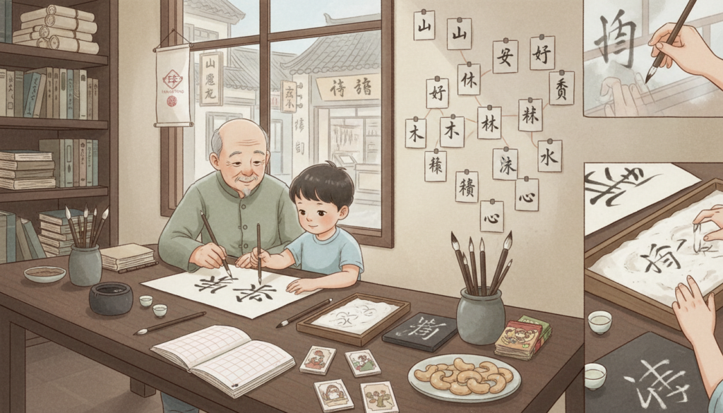 Когда ребёнок слышит эти истории, иероглиф занимает своё место в голове не как бессмысленный значок, а как маленький сюжет. Память зацепляется не за черту, а за ситуацию, в которой она родилась. Так формируется смысловой интерес — гораздо более устойчивый, чем интерес к очередному уровню.