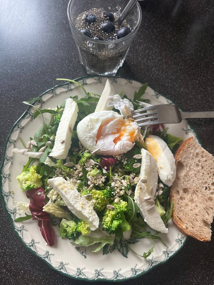 Максимально сбалансированный завтрак, ем, то что захотелось - именно это необходимо организму в данный момент - омега - 3, витамин -К