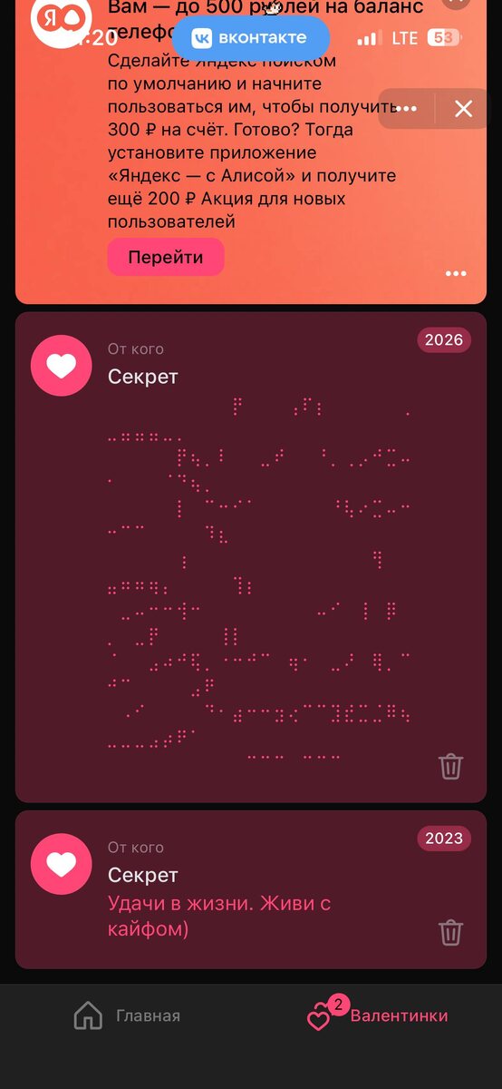В вк появилась вкладка «валентинки».