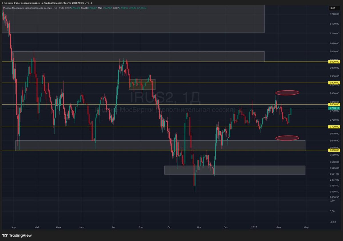 ! На прошедшей торговой неделе мы хорошо подросли по Индексу Мосбиржи 🇷🇺 $IMOEXF, $MXH6, $MMH6 но пока продолжаем стоять в коридоре 2700-2800. С технической точки зрения, шансы на краткосрочное снижение еще есть, но фон пока позитивный. На прошедшей неделе подоспели новости о продолжении переговоров 17-18 февраля, а также ЦБ снизил ставку на 0,5% что стало дополнительным позитивом. По прежнему сильно лучше рынка продолжают выглядеть акции 🏦 $VTBR что очень радует. На мой взгляд потенциал там еще вполне хороший есть, все ждут новости, в том числе по дивидендам. Сам держу большую долю в них. В общем целом пока ничего интересного глобально нет, все ждем разрешения конфликта. Было много разных новостей на этот счет. Полагаю, что часть из них может подтвердиться и мы увидим подвижки с темами выборов и референдума на Украине, а также продолжение встреч по переговорам. Скорее всего по итогам встреч громких заявлений не будет, похоже идет утряска ключевых вопросов, а их итоги надо держат