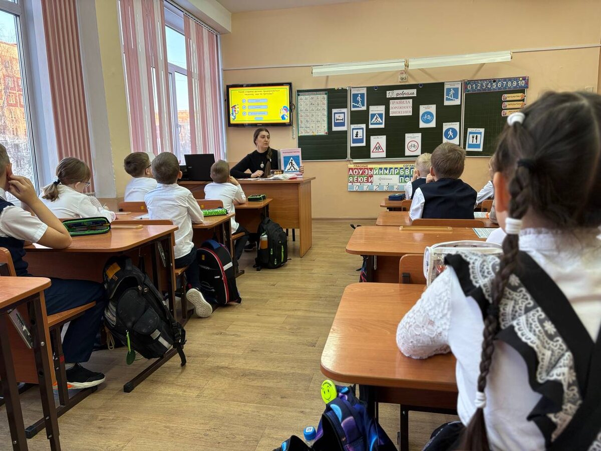 📶Дети отгадывали загадки о дорожных знаках, отвечали на вопросы о правилах поведения пешехода. 🚓Сотрудники Госавтоинспекции рассказали школьникам об опасных ситуациях, которые могут возникнуть на проезжей части дороги, и о том, как их избежать. В доступной и наглядной форме инспекторы объяснили правила перехода проезжей части по пешеходному переходу. 💡Особое внимание уделили использованию световозвращающих элементов в тёмное время суток.