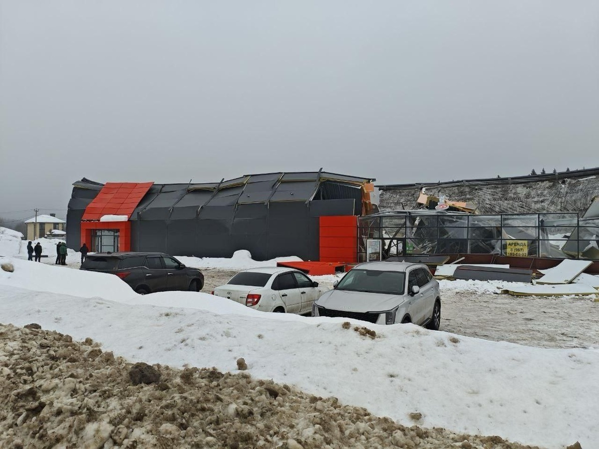 В Дмитровском районе, недалеко от лыжни ГАБО, не выдержав снега, сложилась новенькая Пятёрочка😱