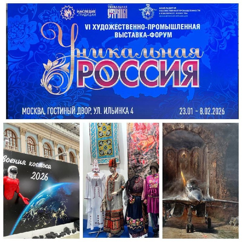 , выставку в «Гостином Дворе» «Уникальная Россия». ➡️ С 23 января по 8 февраля 2026 года в выставочном центре «Гостиный двор» прошел VI Художественно-промышленная выставка-форум «Уникальная Россия». Крупнейшая в нашей стране выставка традиционных и современных искусств открыла 2026 год, который объявлен указом президента Владимира Владимировича Путина - Годом единства народов России ⬅️ «Уникальная Россия» представила лучшие достижения отечественных креативных индустрий и самый широкий спектр традиционных искусств. Посетители увидели выдающиеся изделия народных художественных промыслов, неповторимые работы художников, мастеров декоративно-прикладного искусства – керамистов, эмальеров, кожевников, кузнецов, скульпторов, дизайнеров одежды; познакомились с современными видами искусства, использующими инновационные технологии 🇷🇺 #Школа717 #дошкольноеобразование #ШколыКолледжиМосквы