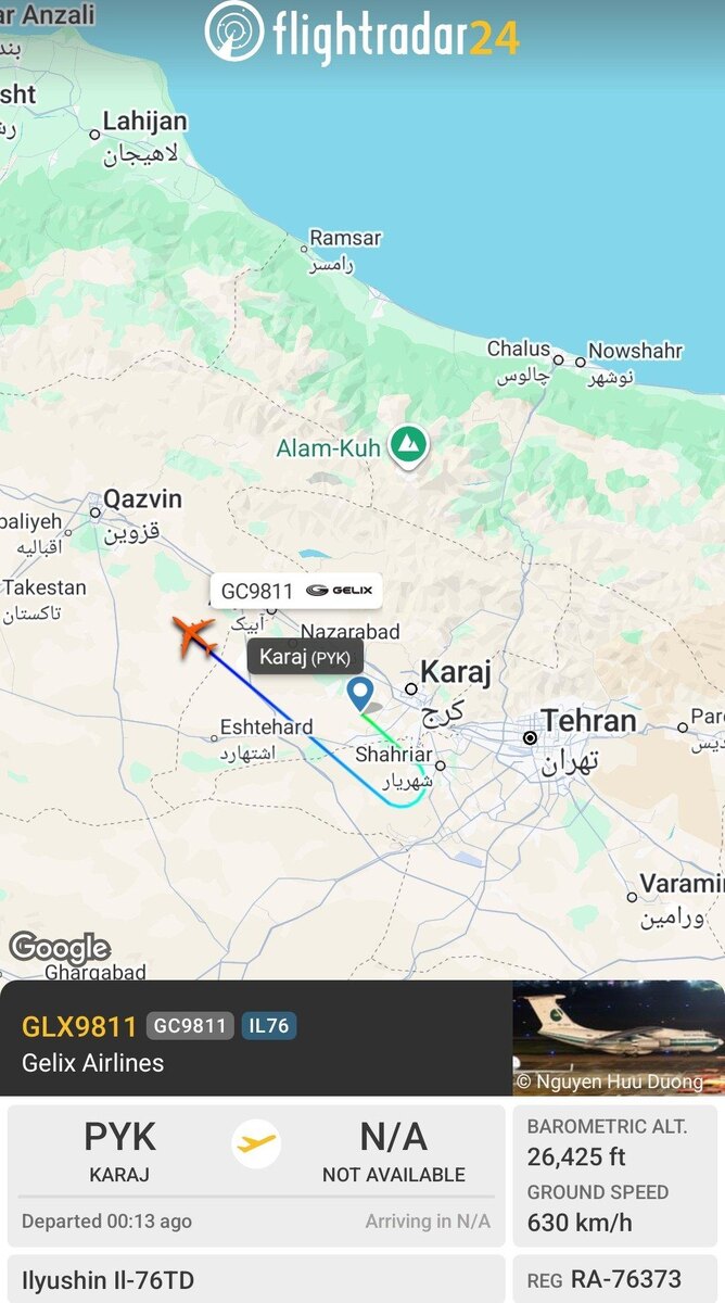 Судя по данным авиатрекеров, в городе-спутнике Тегерана Кередже разгрузился грузовой Ил-76 российской авиакомпании «Геликс