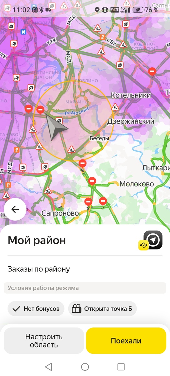До Румянцево 15 минут езды, и от туда обычно бывают хорошие заказы. Но решила мониторить заказы не отъезжая от адреса, т.к. заказы бывают еще из Саларьево.