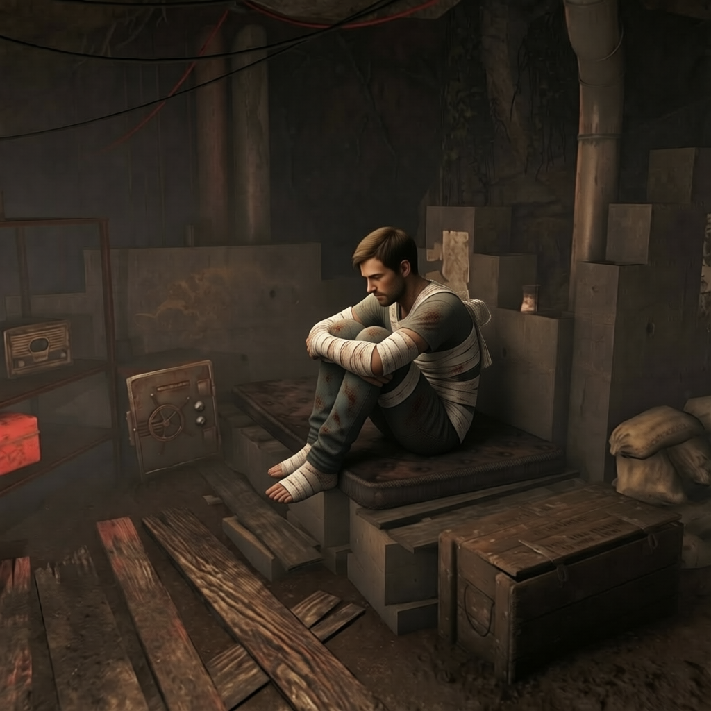 Мысли эти кружились, злые и бесплодные, словно мухи над разлитым сиропом. Он прислушивался к каждому шороху у люка, ожидая развязки: вот-вот спустится Престон — уже не с уговорами, а с жестким приказом освободить ценный бункер для действительно нуждающихся. Или явится Титька — не с микстурой, а с ведром ледяной воды и выльет ему прямо на голову.
