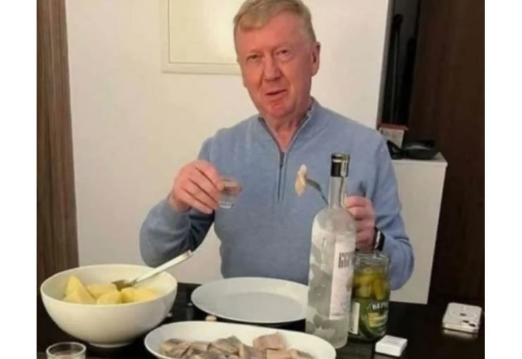Леонид Невзлин выложил фотографию беглого Анатолия Чубайса. Весьма скромная закуска - картошка, селёдка и огурцы. И обстановка как в малосемейке.